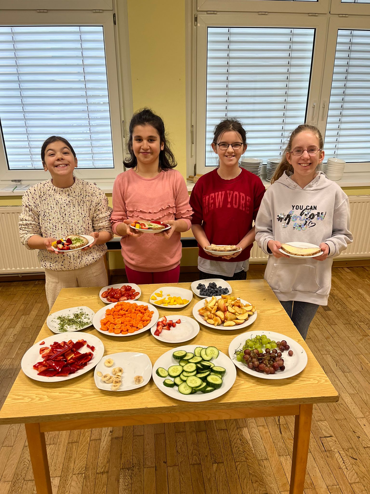 Am Donnerstag, 12.2.2026, bereiteten die Kinder der 4b gemeinsam eine gesunde Jause zu. Butterbrote, Obst und Gemüse fanden reißenden Absatz.