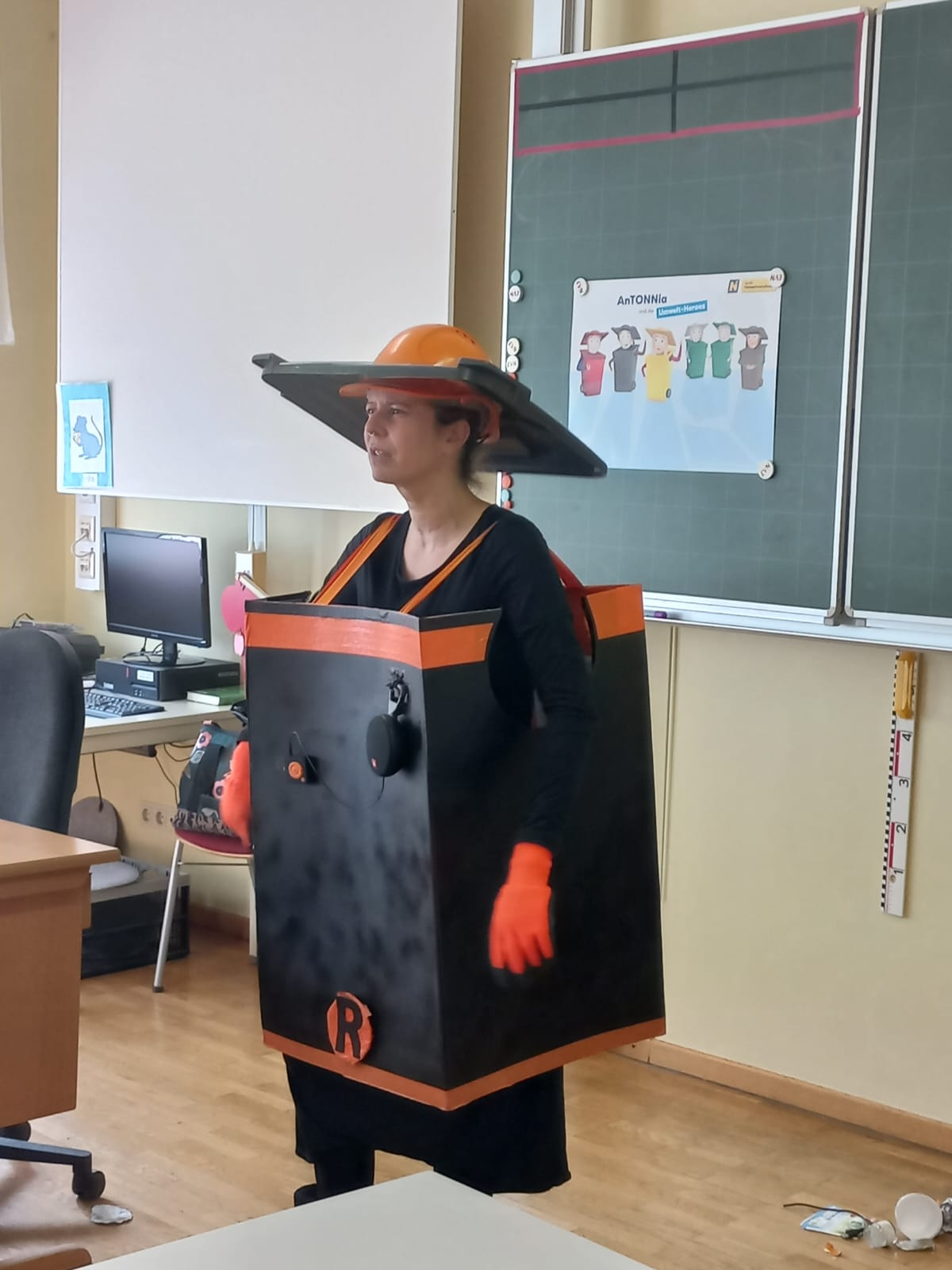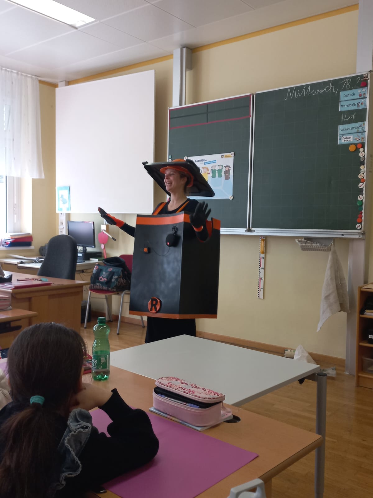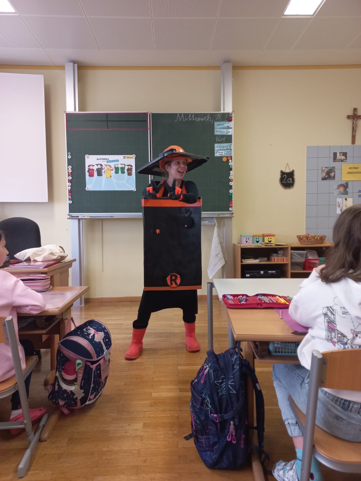 Bei dem kurzweiligen Theaterstück lernten die Kinder von Antonnia, der Restmülltonne, die soeben die Mülltonnenakademie erfolgreich absolviert hat, eine verantwortungsvolle Mülltrennung und warum diese so wichtig ist.
